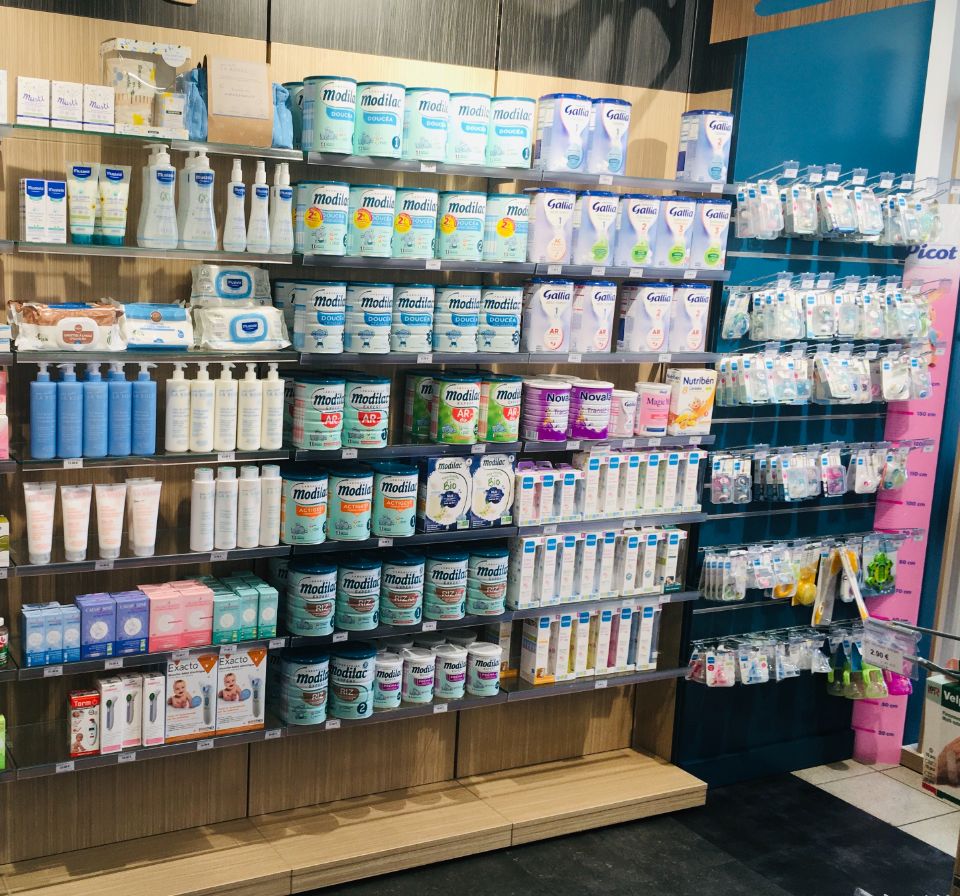 Notre pharmacie dispose de différentes sections spécialisée, notamment : orthopédie, contention veineuse, entretien pharmaceutique (stand by covid), tests antigéniques et vaccins, phytothérapie et un peu d'homéopathie, un espace dédié aux mamans et aux bébés, quelques rayons de parapharmacie ainsi que d'un petit coin soin vétérinaire de base (traitement anti-puces, tiques, etc.).